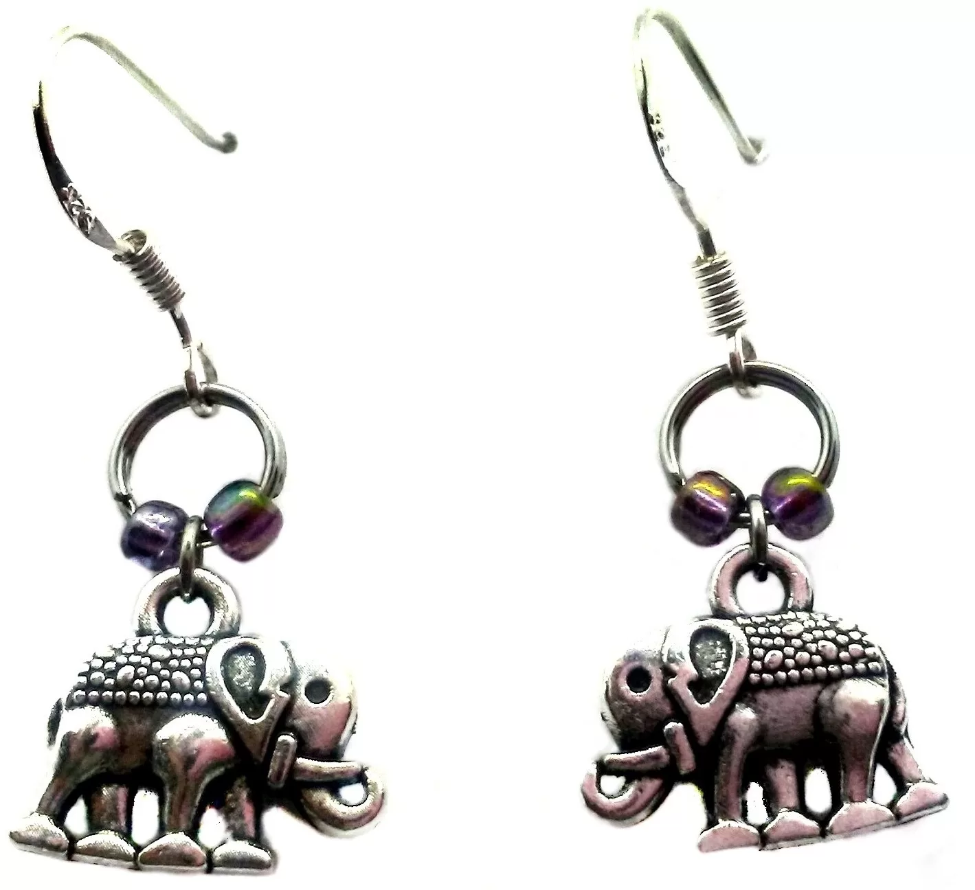 Beautifully detailed copper and platinum elephant charm earrings are small and delicate. 925 silver fish hooks for those who desire or require high quality metal. Incredibly light weight; won’t cause pain or stretch lobes. Complementary silicone earring backs.