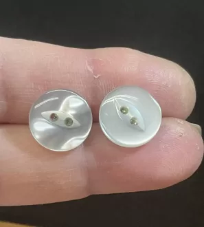 • Upcycled Vintage Button Earrings, White Translucent Button Posts