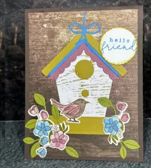 • Hello Friend – Charming Birdhouse Card with Flowers Cute...