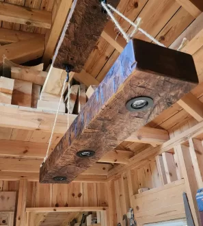 • Rustic Farmhouse Light Fixture With Recessed lights and Hanging...