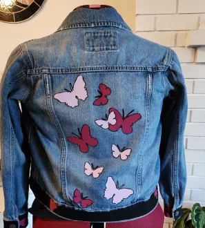 • Upcycled Butterfly Jean Jacket – Youth Size 10 –...