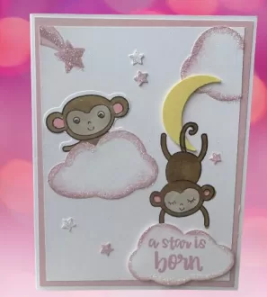 Baby Card for a Girl, Shower Card, Cute Little Monkeys for New...