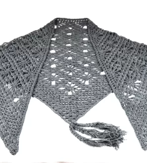 • Warm, openwork, gray crochet shawl. GR-2