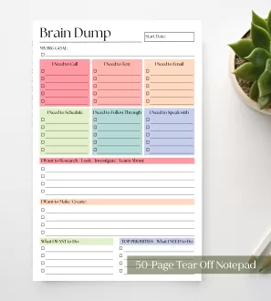 • A5 Brain Dump Notepad: 50-Page Daily To-Do List Planner