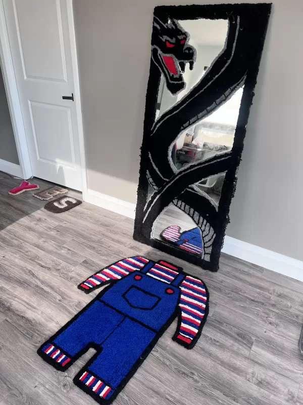 Be the first to review “Chucky Doll Overalls Halloween Rug – 1-of-1 Handmade Tufted Art Rug”