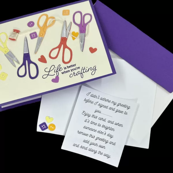 Content: 1 card, 1 Envelope, 1 Extra Greeting and special inclusion with message to customer to let them know they have option of this being a reusable card.