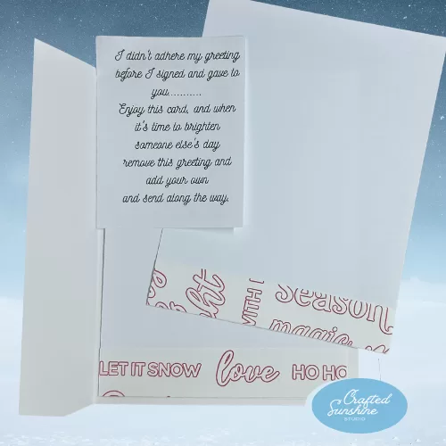 Content: 1 card, 1 Envelope, 1 Extra Greeting and special inclusion with message to customer to let them know they have option of this being a reusable card.