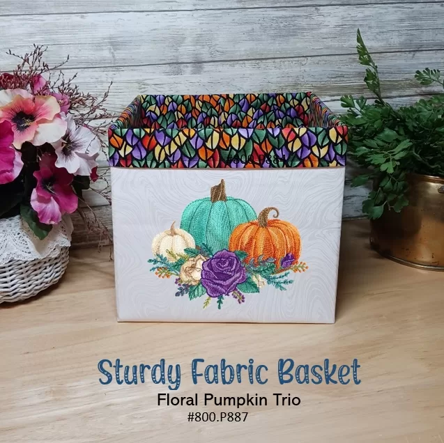 FLORAL PUMPKIN TRIO – Embroidered Sturdy Washable Fabric Basket Storage