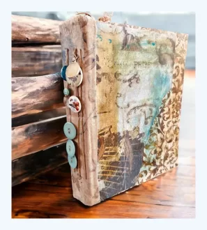 The journal has 30 pages (both sides) in a mix of beautiful white and ochre colored65 lb. cardstock paper.