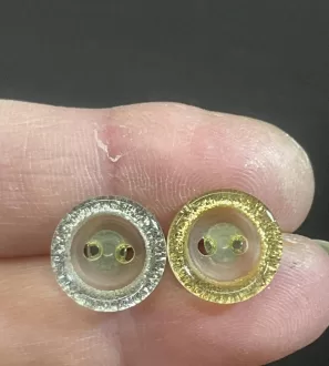 Handmade Upcycled Vintage Button Earrings, Hypoallergenic Posts, metallic trims