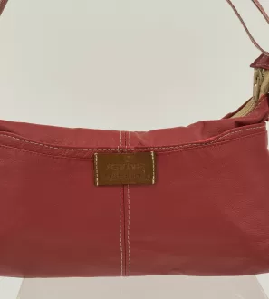 Red & tan leather cross-body