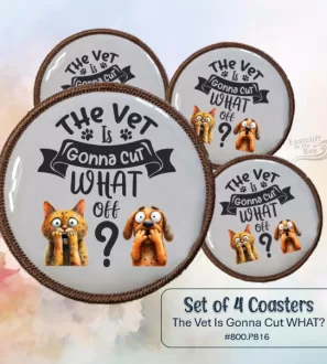 • THE VET IS GONNA CUT WHAT? 4-coaster SET Machine Embroidered...