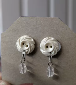 Upcycled Vintage Button Earrings | Handmade Dangle Studs in white| Eco-Friendly Gift
