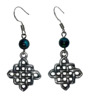 925 Silver Celtic Eternity Knot Blue Tiger’s Eye Earrings