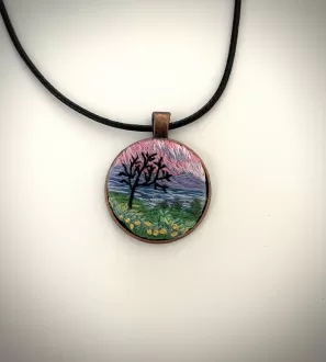 Embroidered Landscape Necklace- Sunrise...