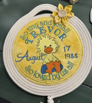 “So Tiny and Small” Personalized Baby Gift Set, Round Tray with 1 monogramed 4″ trinket bowl