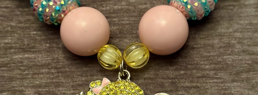 The chunky beads are perfect for small hands to grasp and add a fun tactile element to the necklace. The addition of a fun charm adds an extra touch of personality and sweetness.