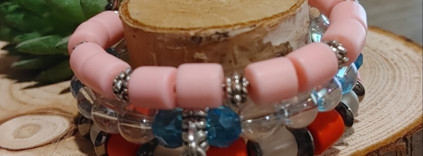 Fun Kid’s Wrap Bracelet with a Pink Headphones Charm.