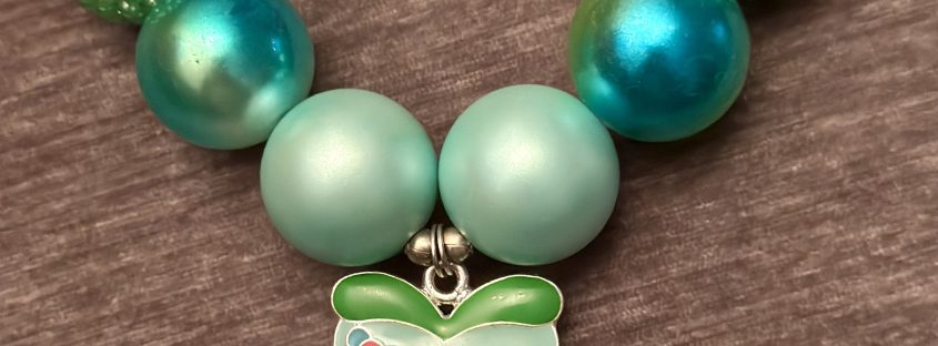 The chunky beads are perfect for small hands to grasp and add a fun tactile element to the necklace. The addition of a fun charm adds an extra touch of personality and sweetness.