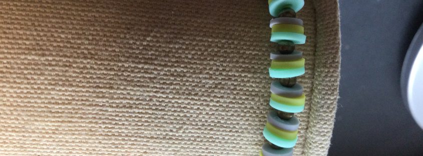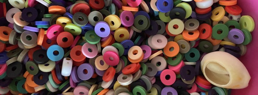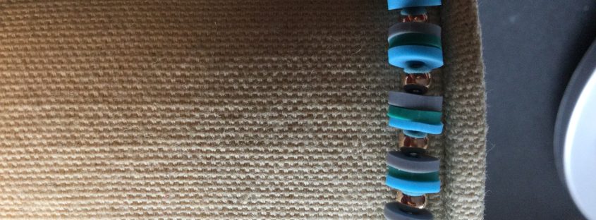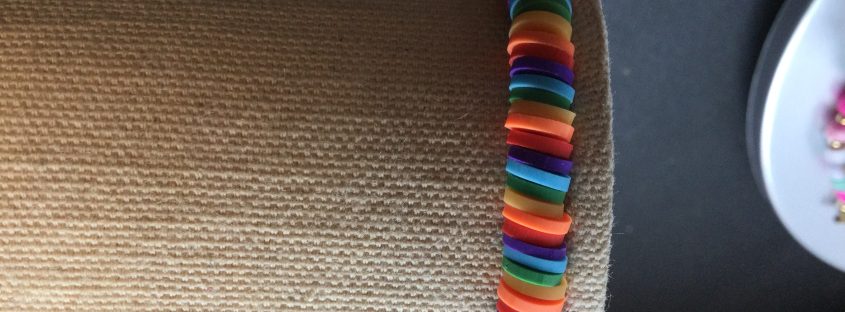 Blue, green, yellow, orange, red, purple clay beads with no spacers