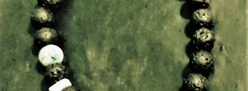 Lava bead bracelets with a scary skull center bead. Colourful, unique and unusual – perfect gift for your friends!
