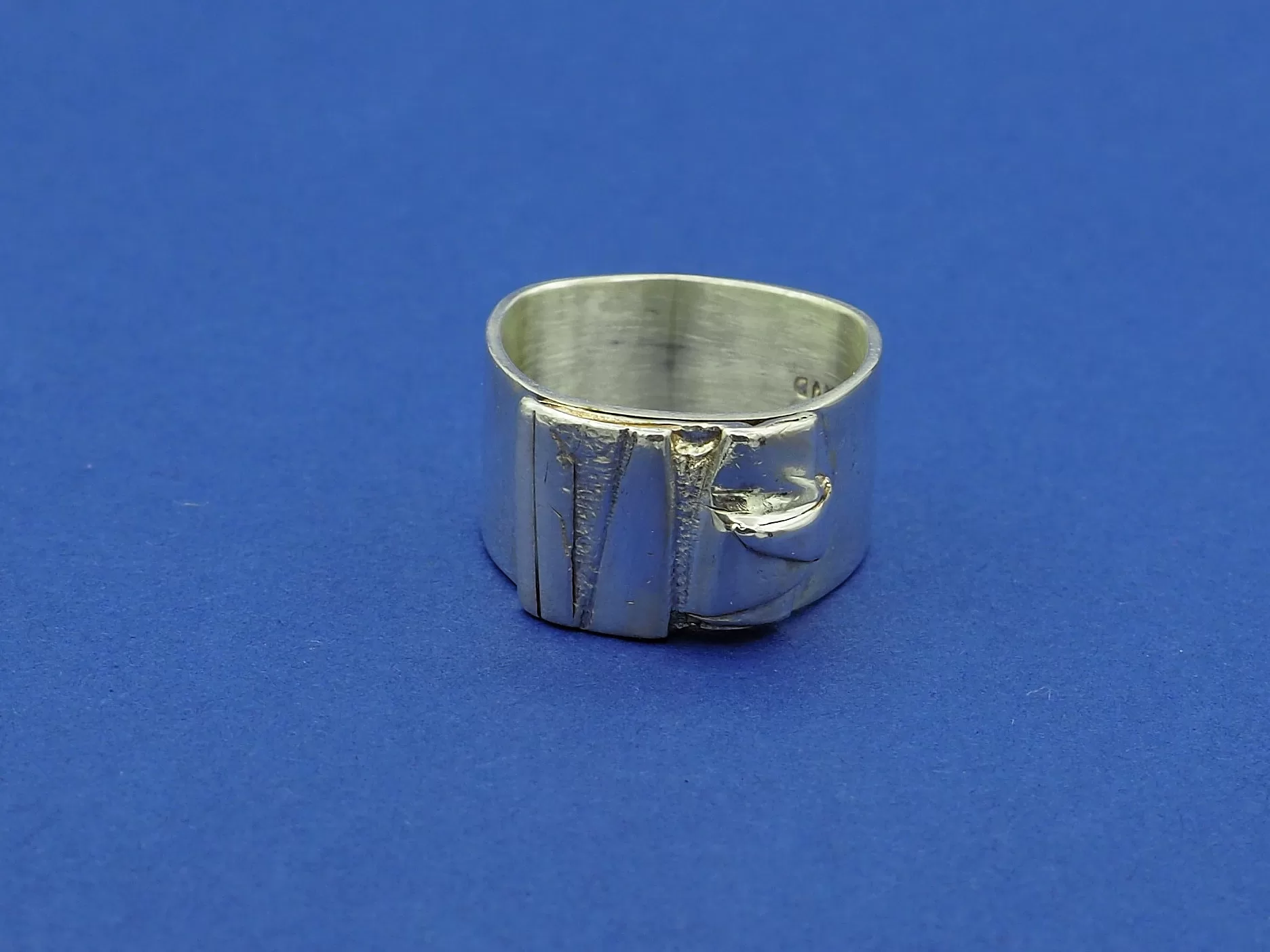 Design: Silver Band ring with abstract ‘ banner-like’ design