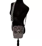 Materials used are water resistant canvas on exterior and interior and has a cotton zipper pocket and crossbody strap.