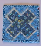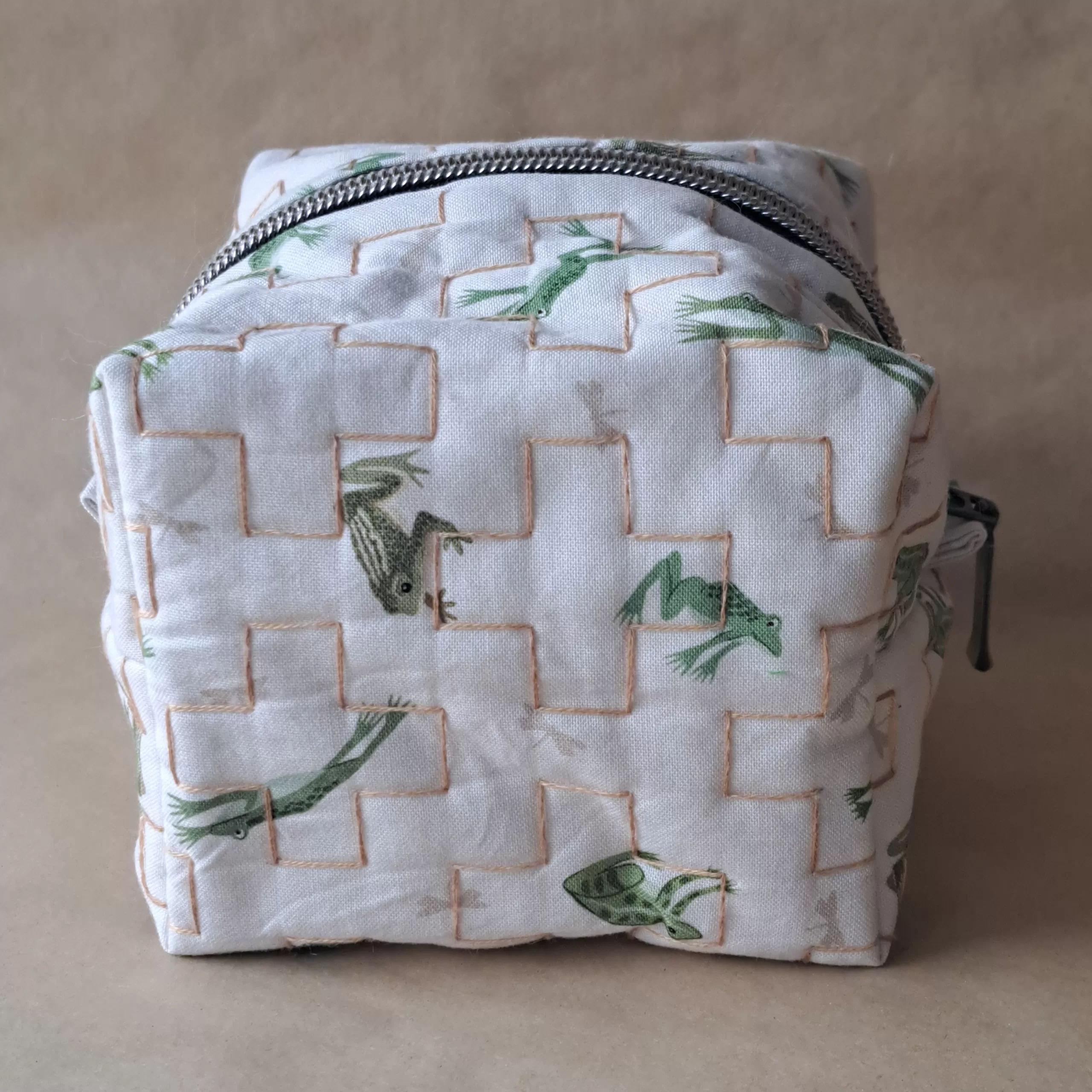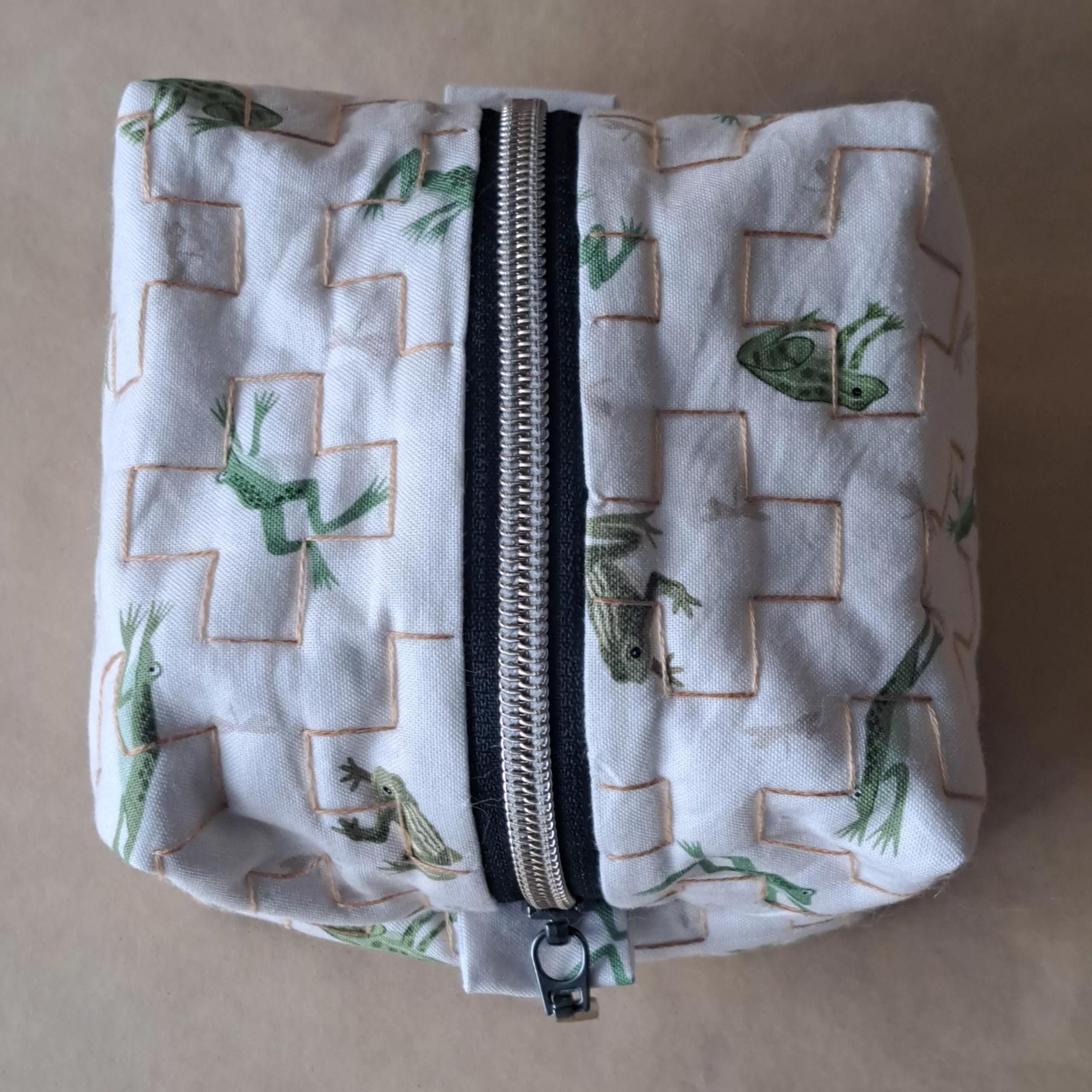 Hand-quilted, lined boxy pouch made with an adorable quilting cotton.