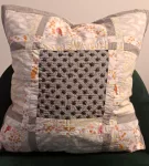 Made with quilting cotton, embroidery thread, and batting. Can be machine washed on a gentle cycle.